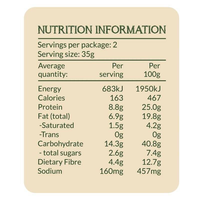 Green Peas (32%), Young Soybeans (32%), Chickpeas (31%), Vegetable Oils, Maltose, Sea Salt, Yeast Extract, Spices, Natural Flavour