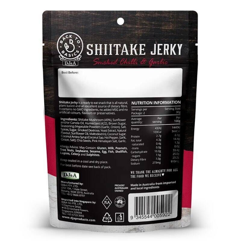DJ&A Vegan Shiitake Jerky Smoked Chilli & Garlic 60g [Shortdated BBD: Nov-25]