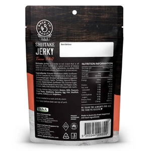 Shiitake jerky is ready to eat snack that is plant based and an excellent source of dietary fibre. It contains no GMO ingredients, no added MSG no artificial colours or preservatives.